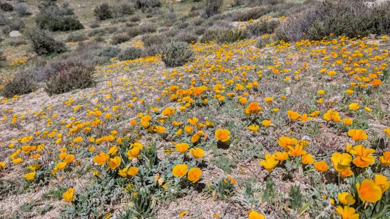 These are the largest Eschscholzia californica | or California poppy, fields that we've ever seen in the Anza-Borrego Desert.