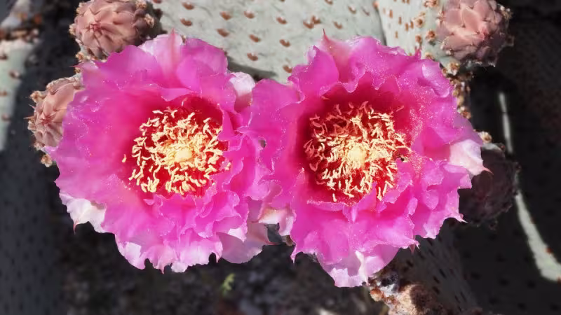 There is one blooming Cylindropuntia ganderi (Gander's cholla) and one in bud.