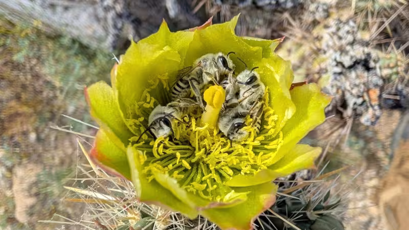 Cylindropuntia ganderi | Gander's cholla, has started to bloom and are a great place for insects to spend the night.