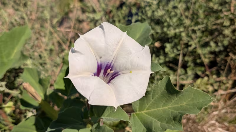 There are plenty of blooming Datura wrightii | Jimson weed and Datura discolor | Desert thorn apple. Both can grow into huge plants here with an unlimited amount of water.