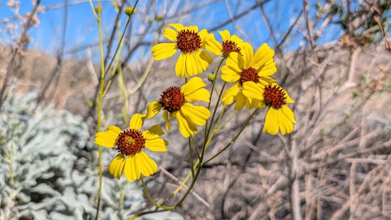 The Bahiopsis parishii | Parish's goldeneye, is starting to bloom along the road and on our hike. Many are still in bud.