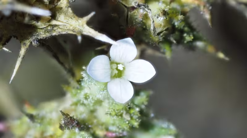 At one point, we were puzzled by a blooming plant with the wrong number of petals for Navarretia attracts | hollyleaf navarretia. However, after finding more plants, we confirmed the identification.